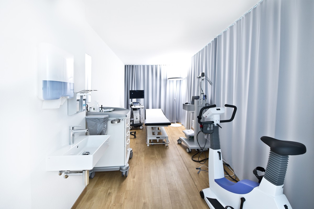 - einen umfassend ausgestatteten Diagnostik- und Therapieraum fĂĽr Ultraschalluntersuchungen, Ruhe- und Belastungs-EKG sowie Infusionstherapien