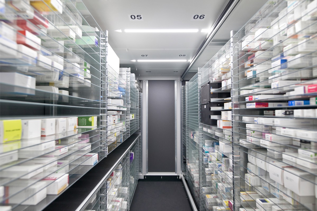 - einen vollautomatischen Medikamentenroboter zur sicheren und effizienten Medikamentenabgabe